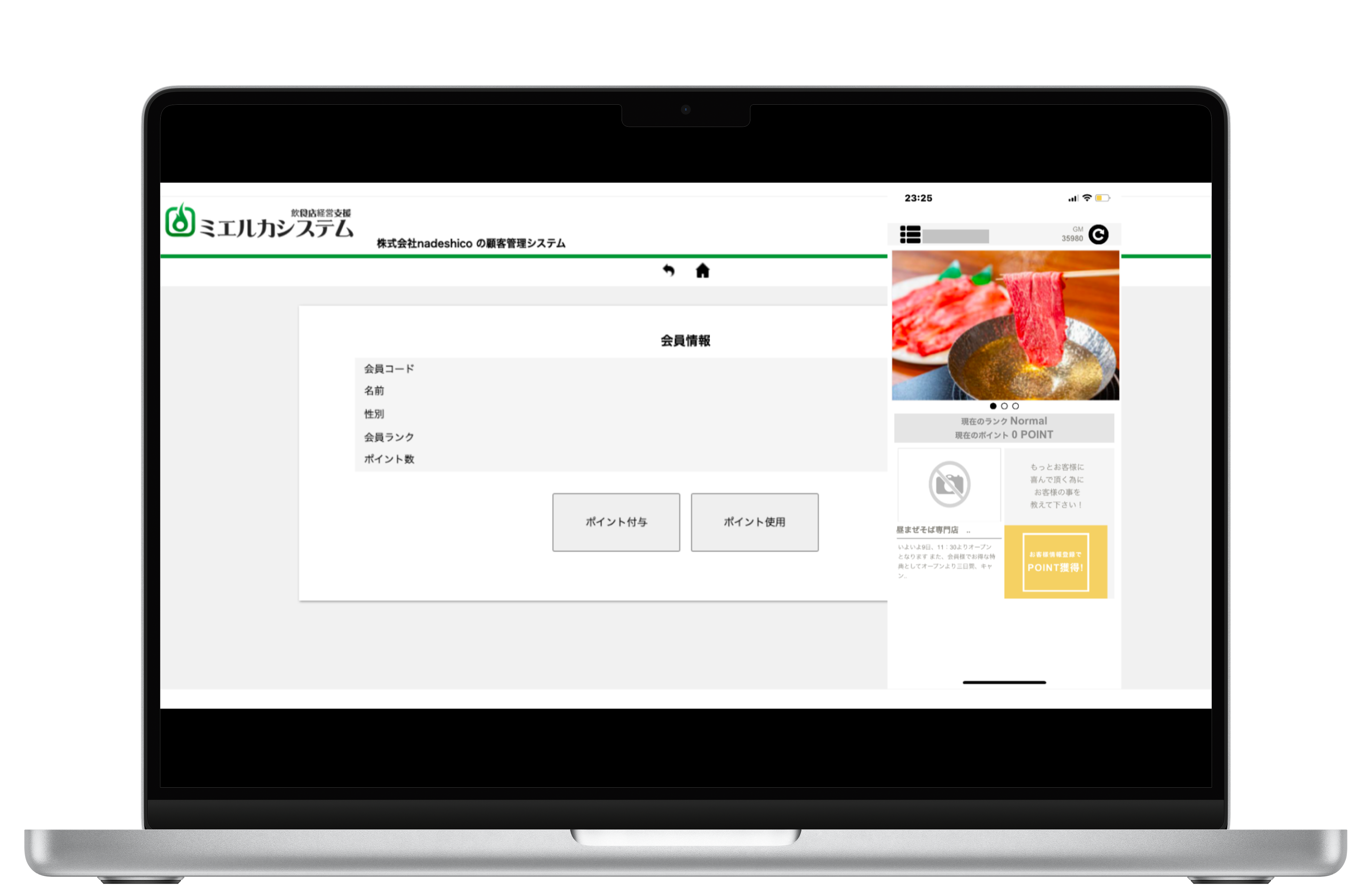 会員アプリと連動し、ポイント付与やPUSH通知でファンづくりを支援。顧客情報を一元管理できます。