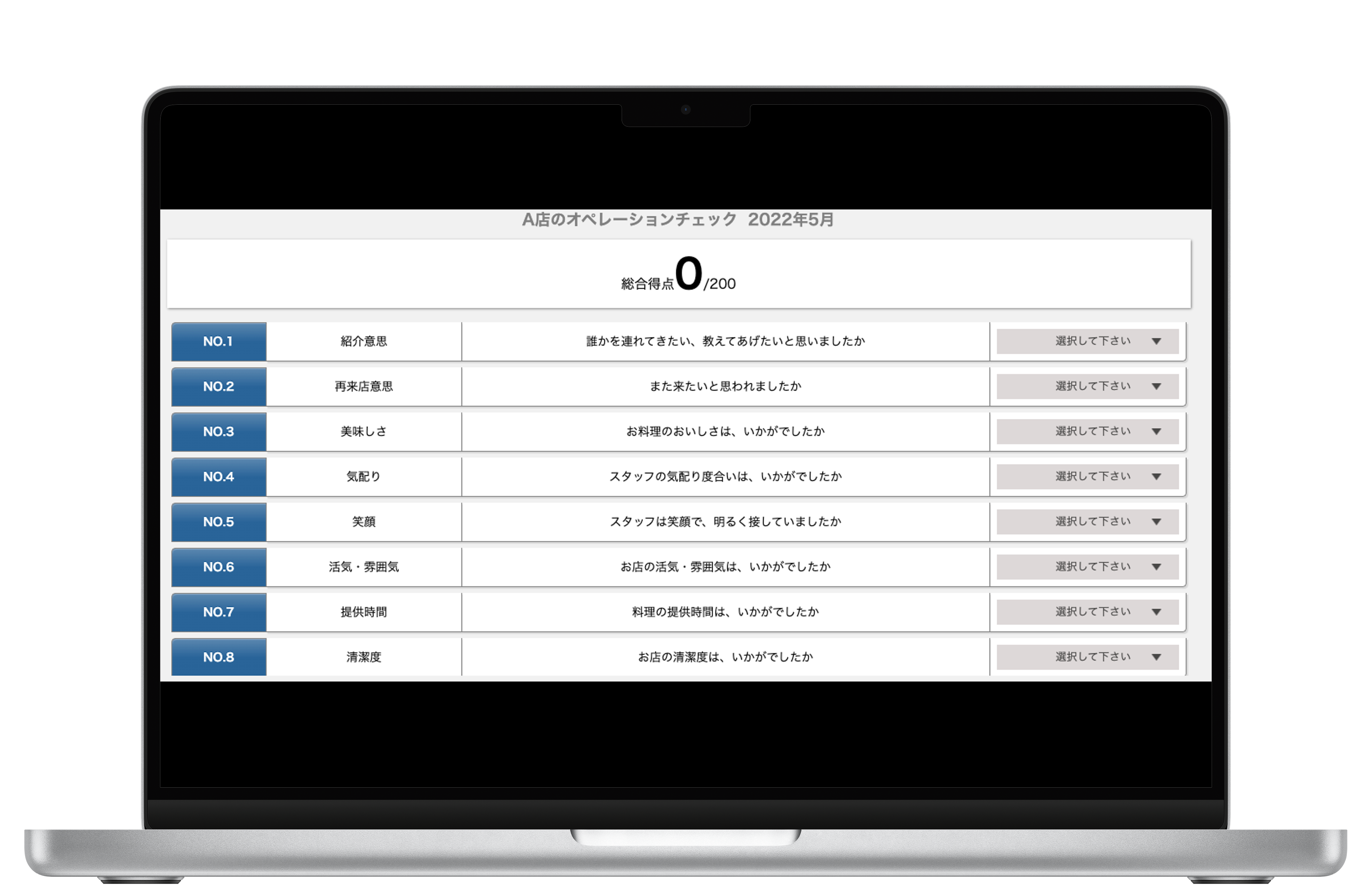 QR/タブレット/スマホで回収し、その場で集計。ランキング表示でスタッフのモチベーション向上にも活用できます。