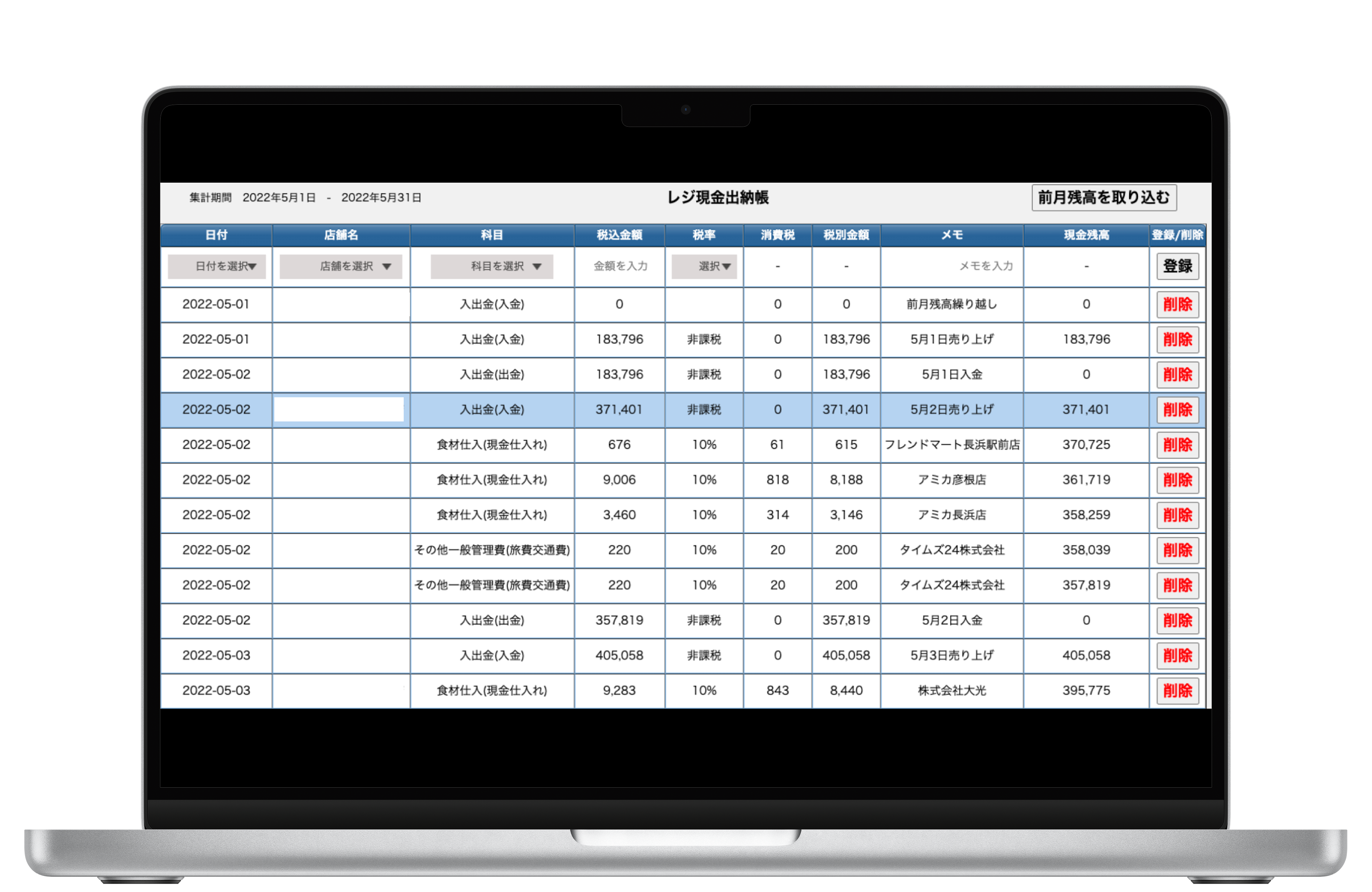 原価・人件費以外の経費も即座に損益・出納帳へ反映。経営スピードと管理効率を両立します。